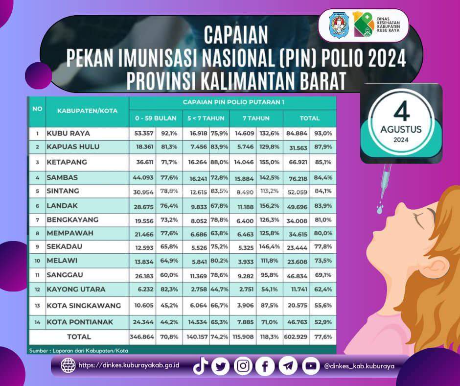 UPDATE CAPAIAN PIN POLIO KABUPATEN/KOTA SE PROVINSI KALIMANTAN BARAT