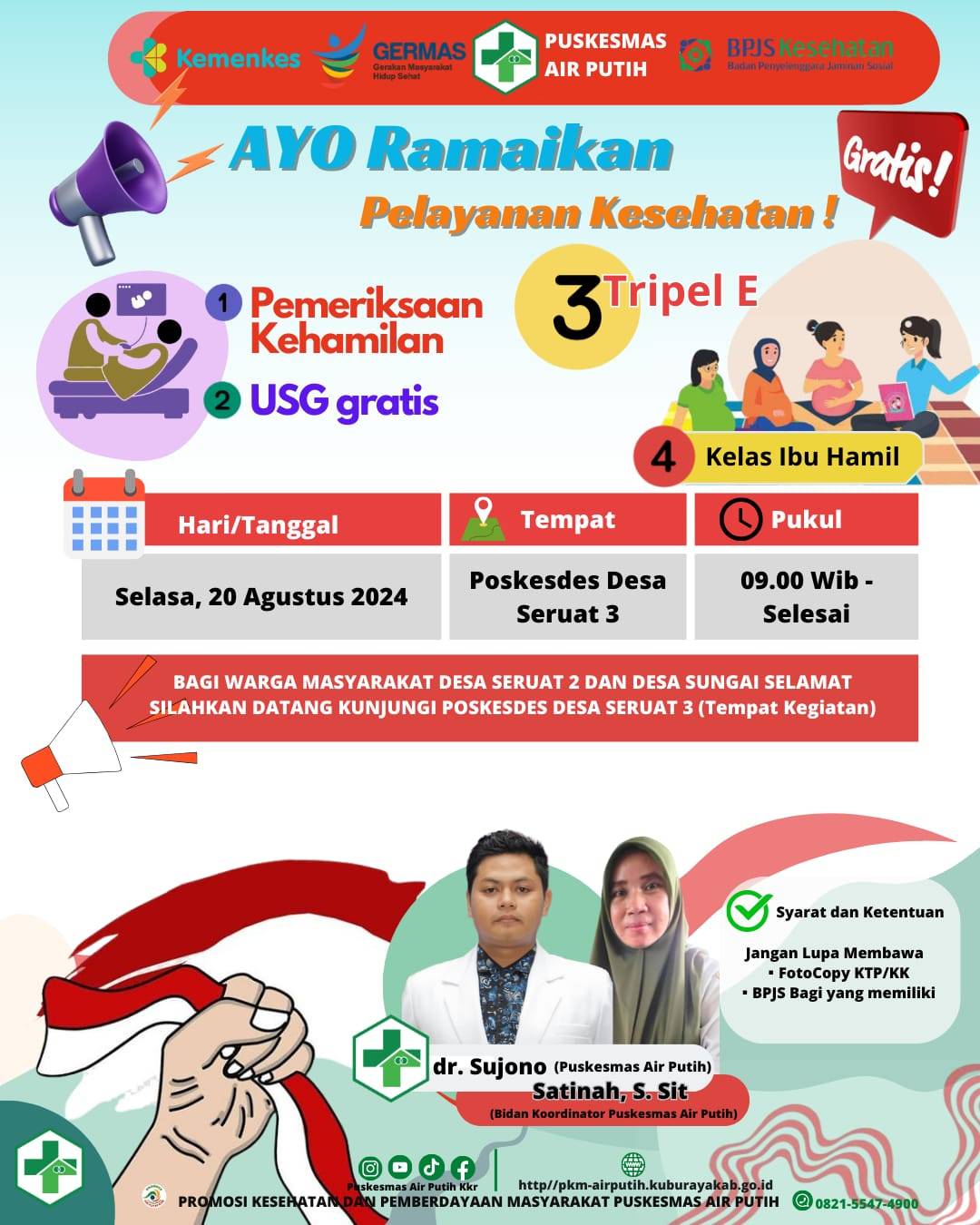 Pelayann Kesehatan "PEMERIKSAAN KEHAMILAN & USG GRATIS" di Poskesdes Desa Seruat 3